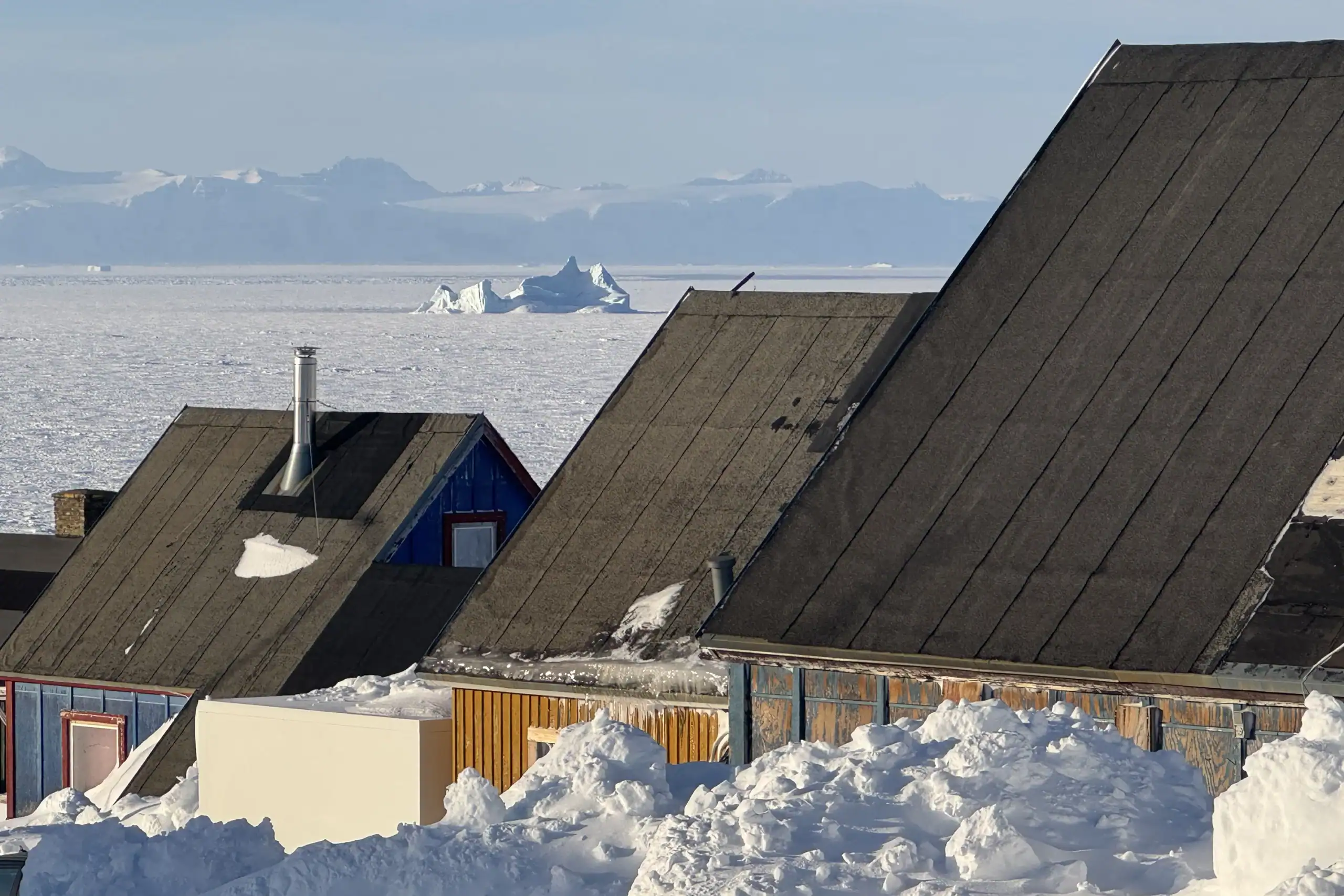 The next morning, we awoke to a vibrant day. The sun was shining and Ittoqqortoormiit seemed alive with people walking to work and school. Trucks were ploughing snow and making deliveries and the view from the top of the hill over the colourful community was exciting. My companion and I went for a quick walk and made friends with some kids building snow forts and several wayward dogs.