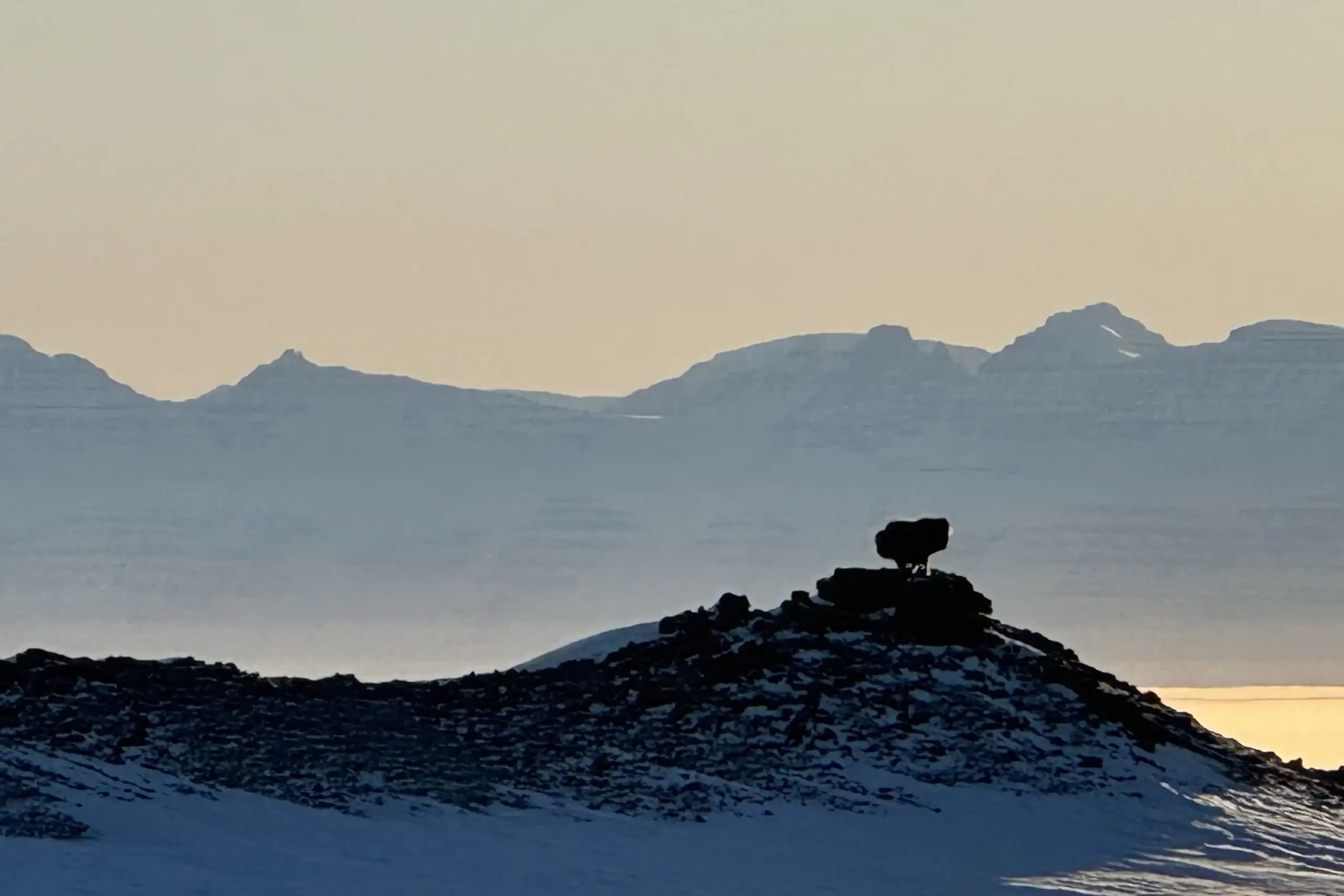 Martin and his co-guide Gabbe are hunters who are constantly looking for wildlife. This was not a hunting expedition, but it’s impossible to take the “hunt” out of the “hunter”, and their eyes were always scanning the sea ice and land for polar bears and muskoxen. On this day, high up on a ridge, we saw three muskoxen basking in the sun atop a large rock. I could see Martin thinking about what his next steps would be if he were hunting, but instead, he told me about how muskoxen move and where he thought they would go next.
