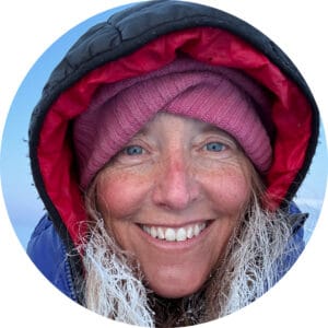 Annie Aggens loves the polar regions and gets to talk about them every day as director of PolarExplorers, an adventure travel company that organizes and guides polar expeditions. She has guided multiple expeditions to the North Pole, South Pole, Greenland and Iceland. She is the author of the Encyclopedia of Outdoor and Wilderness Skills and she often presents about polar history and expedition travel. Her role as polar guide allows her to teach people about the effects of climate change on the Arctic and polar regions. Favorite tent pastime? Playing her “guitarita” and having poetry slams. She is on the board of the International Polar Guide Association.